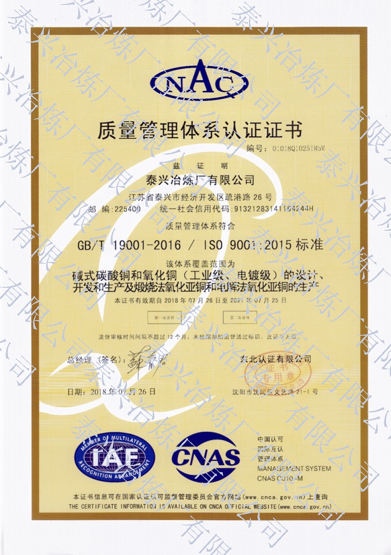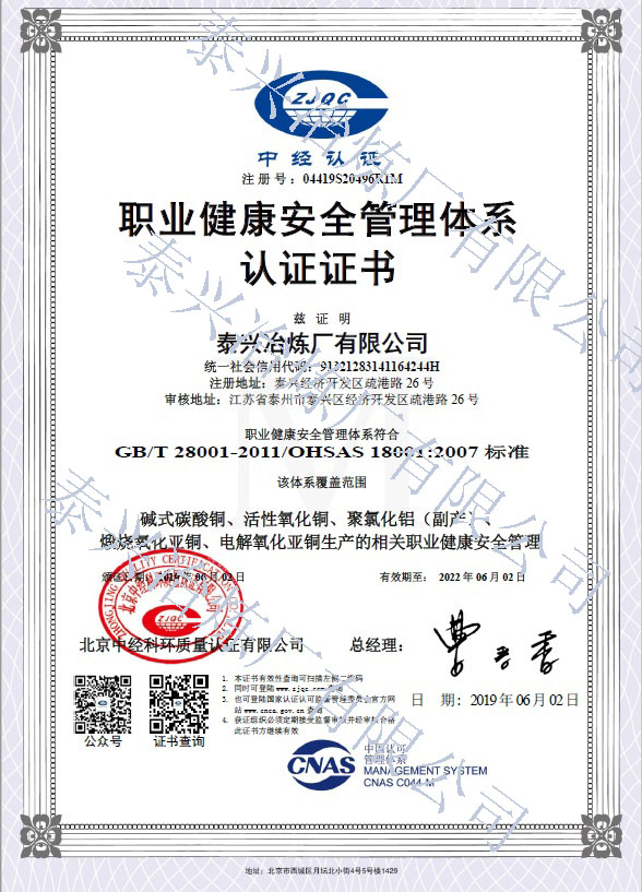 泰興冶煉廠有限公司(原泰興冶煉廠),始建于20世紀(jì)70年代初,現(xiàn)位于江蘇省泰興經(jīng)濟(jì)開(kāi)發(fā)區(qū)。歷經(jīng)40年的創(chuàng)新驅(qū)動(dòng)、穩(wěn)健發(fā)展,已成長(zhǎng)為一家專業(yè)生產(chǎn)堿式碳酸銅、高純電鍍氧化銅、氧化亞銅、氧化銅、無(wú)水硫酸銅、海綿銅粉及副產(chǎn)品聚氯化鋁(凈水劑)等系列無(wú)機(jī)鹽產(chǎn)品及處置不含氨的氯化銅蝕刻液(HW22)15000噸/年的“國(guó)家高新技術(shù)企業(yè)”和地方性骨干企業(yè)。公司總占地面積3.7萬(wàn)平方米,建筑面積4萬(wàn)平方米,注冊(cè)資本2088萬(wàn)元,固定資產(chǎn)1.2億元,年產(chǎn)值約7億元。